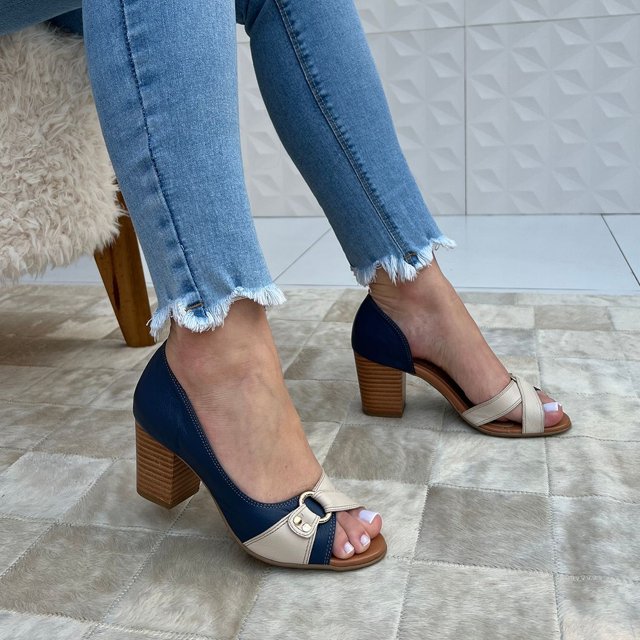 É considerado um escarpin (clássico salto alto) que exibe parte dos dedinhos. Podem aparecer em modelos rasteiros, com salto anabela, fino, médio ou altíssimo, e são extremamente versáteis.