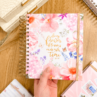 Com um visual floral delicado e feminino, ela transforma o simples ato de planejar em um momento de cuidado pessoal e inspiração diária.