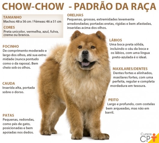 O Chow Chow é um cão robusto com uma cabeça larga e orelhas pequenas e arrendondadas. A raça tem um pêlo bastante denso, que é ao mesmo tempo liso e resistente. A pele é particularmente grossa ao redor do pescoço, dando a aparência de uma juba.